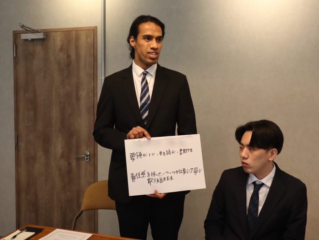 当社の入社式では、新卒の皆さんにフリップを用いた自己紹介をしてもらうのがここ数年の定番となっております。