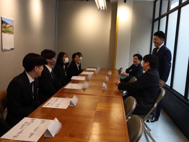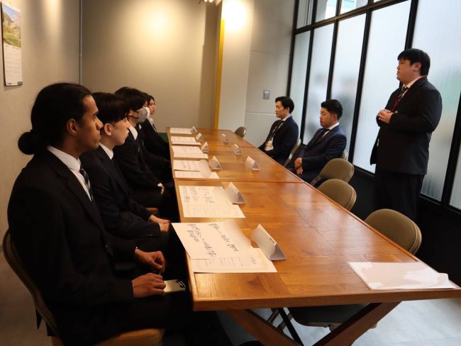 和やかな雰囲気の中、先輩社員との交流も深まり、少しずつ緊張もほぐれていく様子が見られました。